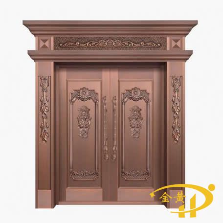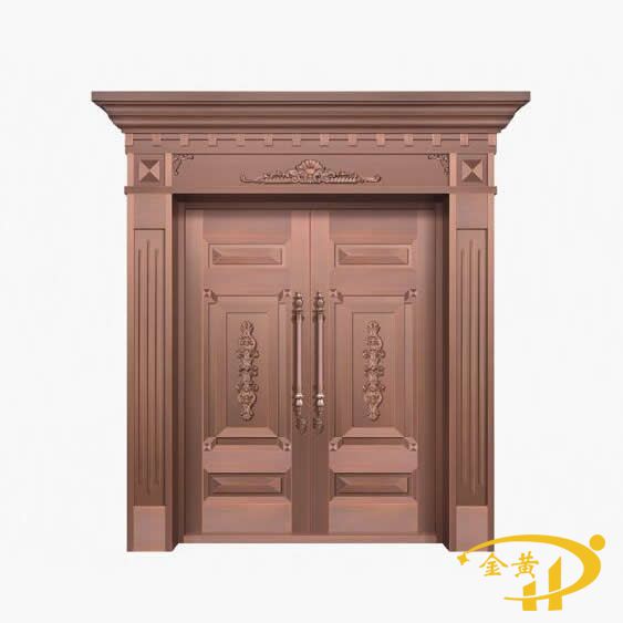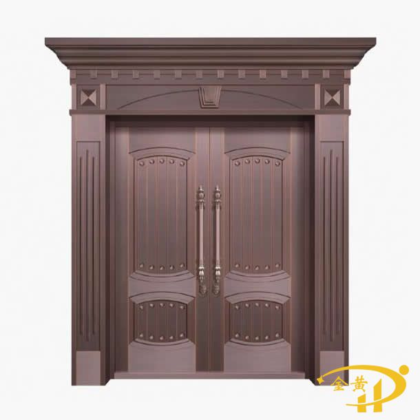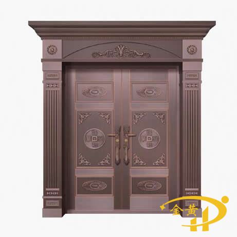 本款对开铜门,型号是M-9080,门面采用整板模压工艺,原材料为洛阳纯紫铜或黄铜制作而成。億彩 注意:罗马柱、门头高度、墙体厚和门柱宽度可根据客户实际要求量身定制。