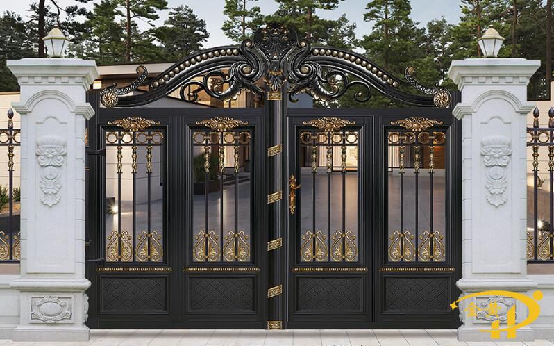 本款中式庭院大门,型号是6835,任何尺寸均可定做,镂空门扇采用各种尺寸铝型材及铝花拼接而成,实心门扇采用整体铸铝板而成。注意:整体纯铝门柱款式及尺寸可根据客户实际要求量身定制。