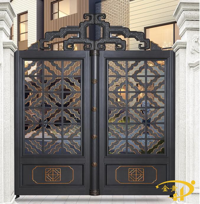 本款庭院大门,型号是6861,任何尺寸均可定做,镂空门扇采用各种尺寸铝型材及铝花拼接而成,实心门扇采用整体铸铝板而成。注意:整体纯铝门柱款式及尺寸可根据客户实际要求量身定制。