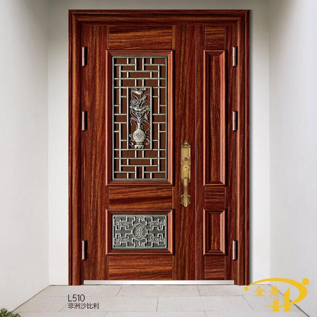 本款门中门防盗门,型号是L510,门面采用精工拼接工艺。